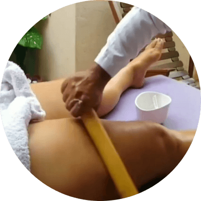 Massagem realizada com hastes de bambu, que estimula a circulação e promove relaxamento e modelagem corporal.